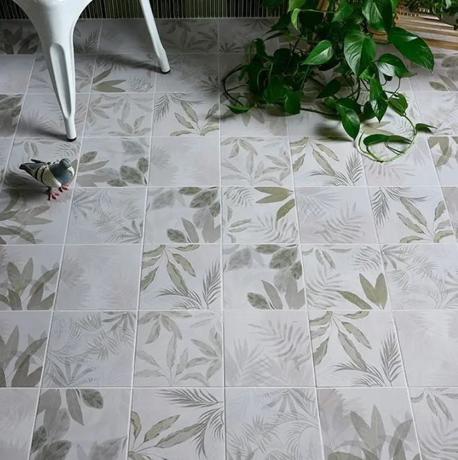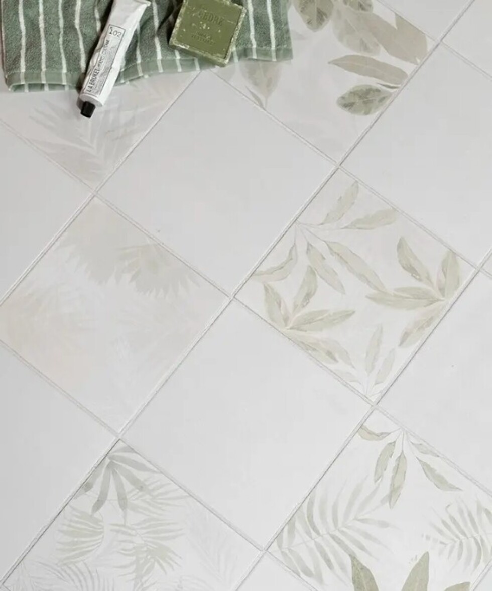 A blend of tropical designs in muted peach and sage tones; Glass House celebrates the flora of the tropical greenhouses of the Victorian era. A subtle yet stunning feature, Glass House comes as a pre-mixed blend of designs and is suitable for floor and walls.