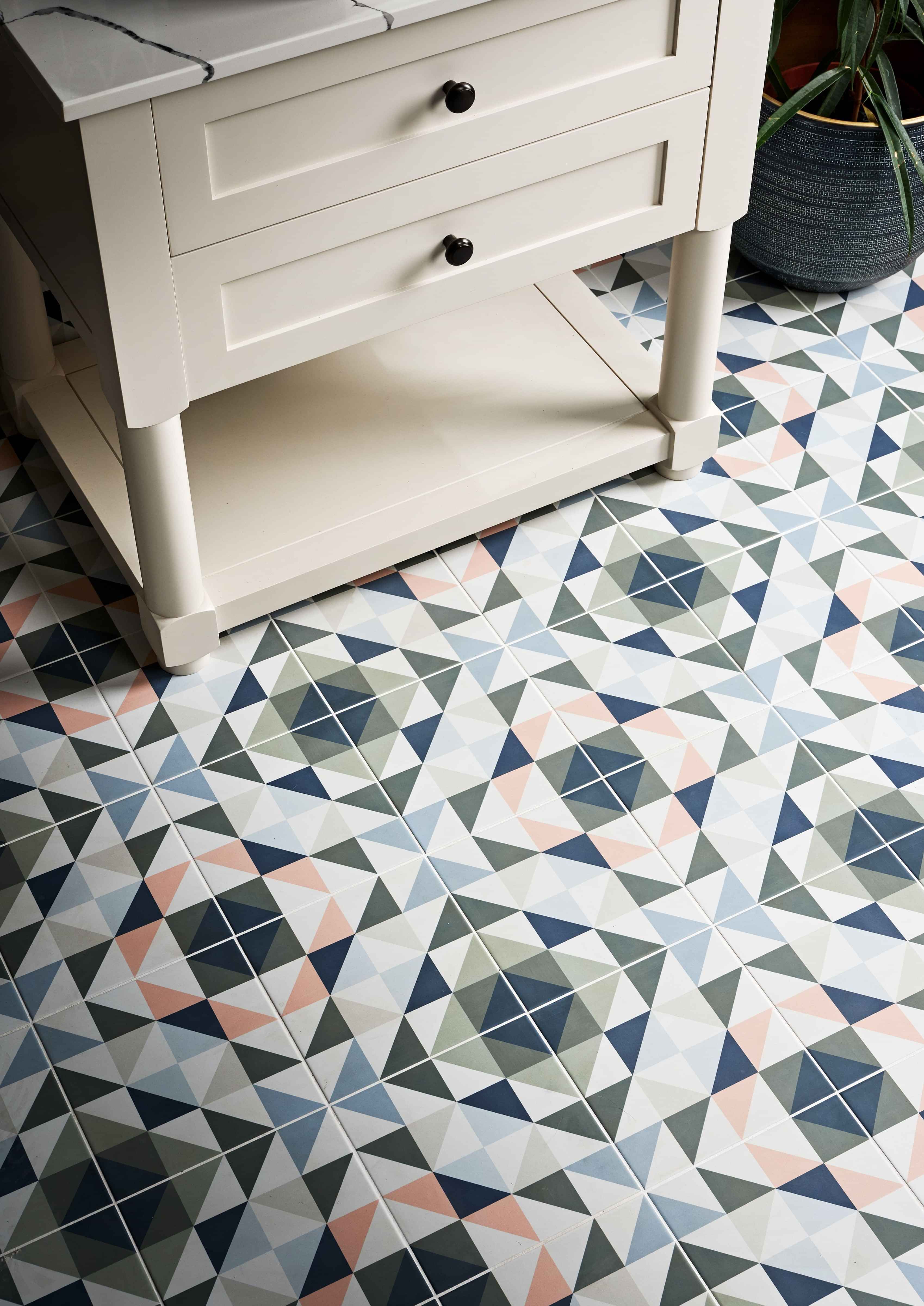 Kaleidoscope was taken from decorative victorian quilt designs and reimagined with brightly-coloured tones inspired by native butterfly species. These tessellating geometric designs can be laid several ways to create impact and drama.