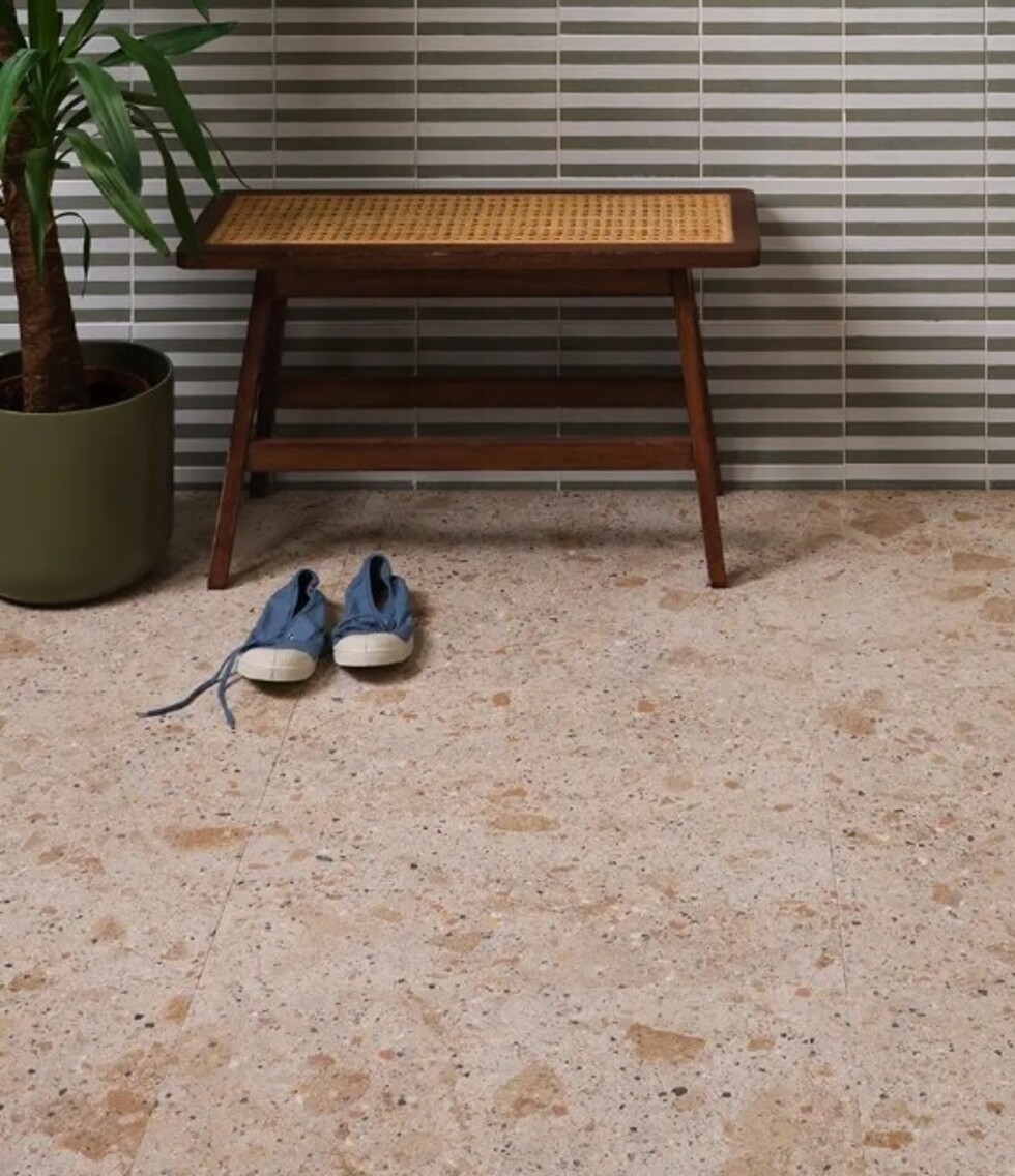 Evoking the terrazzo pavers used by the artist Michelangelo, Pumice Porcelain is a highly textured, yet soft underfoot tile, available in two stunning organic tones. The high-spec print carries right through the body of the tile, meaning that chips and scrapes are never a problem. It is also made from 40% recycled material.