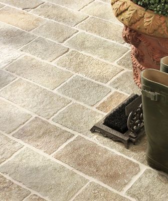 The tones may be soft and muted, but the stone is as hard as nails – virtually indestructible, in fact. The natural riven face of the stone is smoothed off, then “seasoned” to give you the appearance of a time-worn, country-house floor. A fantastic price for a memorable good limestone.