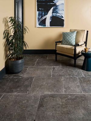 A rustic, moody-toned graphite-brown sandstone with a deeply pitted, naturally riven surface and a finish which replicates all the hallmarks of authentic ageing. Perfect for creating a heritage floor that will look the part in a farmhouse or Victorian terrace alike.