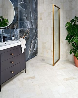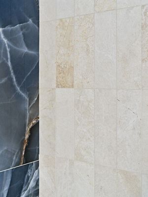 A sleek, neutral bone-coloured marble with subtle grey veins and highlights. Folio is a great stone for modern interiors and the honed finish makes it wonderfully tactile.