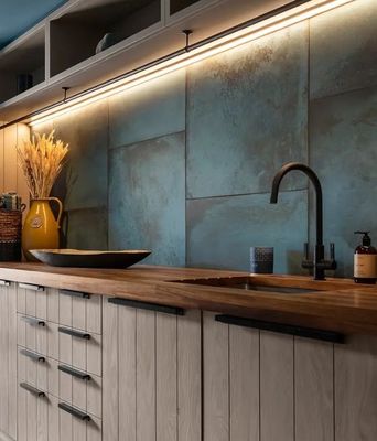 In keeping with the ongoing trend for all things industrial, our porcelain Chemistry tile collection oozes urban chic. In a choice of Verdigris and Denim the tiles are suitable for floors and walls and are ideal for busy areas. The large format design is also great for creating a feeling of space in a smaller room