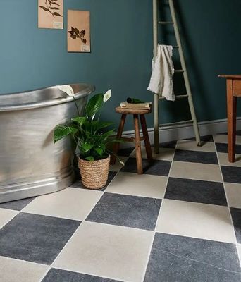 Perfect for chequerboard hallways, the tumbled-looking edges of this porcelain give an unbelievably realistic stone effect. The Charcoal, with an inky black colour, is ideal for moody interiors, whilst the Ecru is extremely versatile and works with any interiors style.