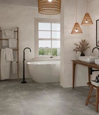 A simple, understated range of concrete-effect tiles which pair beautifully with any furniture styling and contrasting tile choices. Choose from plain tiles, hexagons for geometric interest, or the unique and right-on-trend antique decor, which perfectly blends geometric tapestry, like patterns with modern industrial overtones.