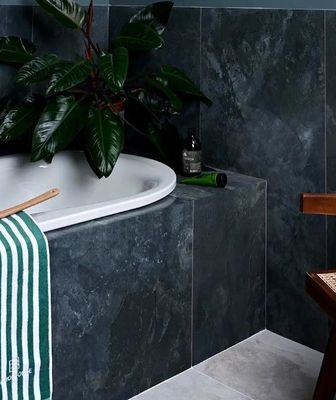 Taking its cue from natural multi-coloured slate; these tiles have a vivacious, realistic print and bright contemporary colours; which lend themselves perfectly to the honed finish for a easy to maintain, modern feel.
