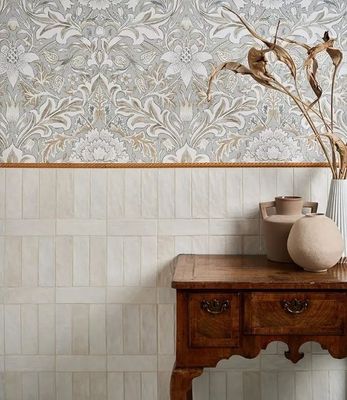 In dark, dramatic tones, nicely neutral or pale pastels, Oasis gloss ceramic tiles have a Moroccan Zellige feel, adding a textured touch to interior walls. These tiles come in varying tones to create interest.