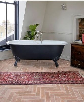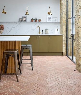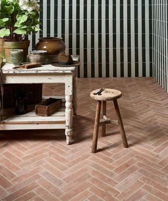 A faithful reproduction of our well-known Marlborough Terracotta in a hardy porcelain format, these tiles replicate all the undulations and rustic charm of real terracotta. Create glossy drama with the glazed Bottle Green and Cotton White options, or create an italian-style herringbone floor indoors or out with the Natural.