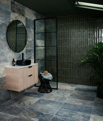 Rustic slate designs combine natural elegance with industrial style. Lombok, with its tactile, riven-effect surface, also has the added durability of being porcelain and is easy to care for.
