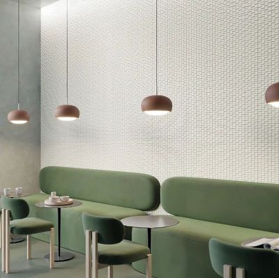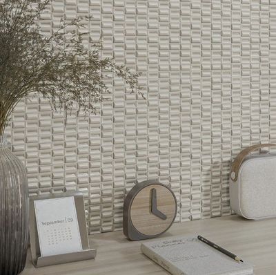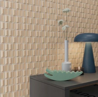 Each piece is composed of small 3D tesserae, capable of transforming any space with gloss and matte finishes.