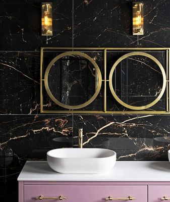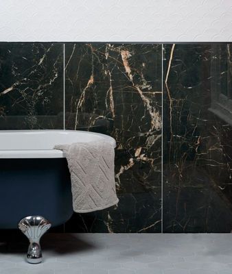 Crafted from durable porcelain, these tiles feature a polished finish that accentuates their deep, rich colour, creating a sense of depth and drama. The Laurant hue, a deep black, adds a bold statement to your design palette, ensuring a memorable impact.