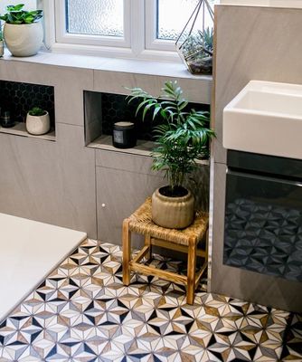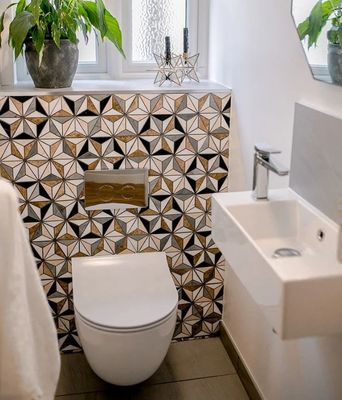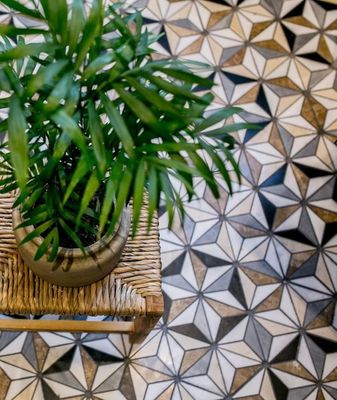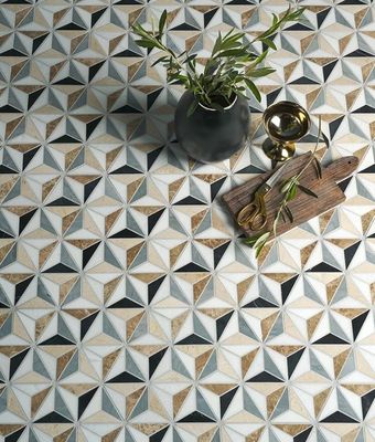 The Istanbul Marble Mosaic is a captivating blend of artistry and craftsmanship, featuring a hand-mixed array of triangular pieces from five distinct marbles. This mosaic creates a visually striking pattern that brings a touch of elegance to any space.